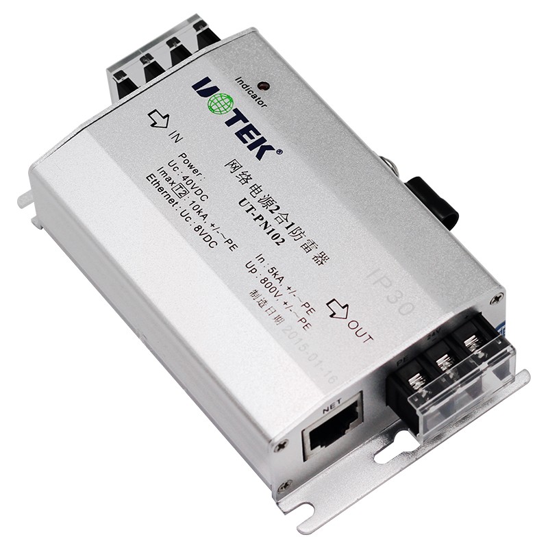 產品名稱:防雷器 產品型號:UT-PN102 信號接口:網絡電源二合一