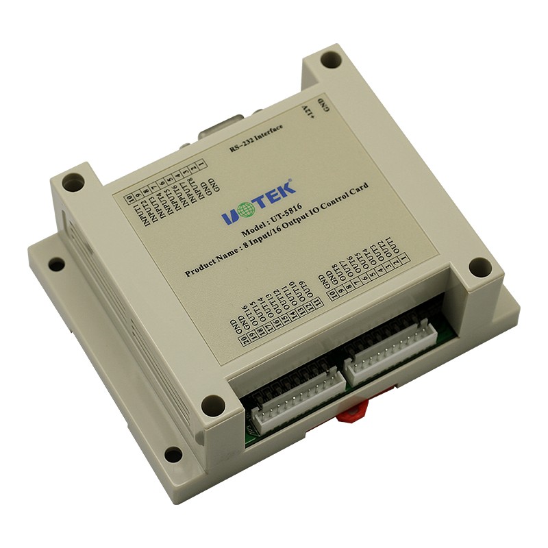 UT-5816是一款8通道干接點(diǎn)輸入,16通道電壓輸出模塊;輸入輸出都有對(duì)應(yīng)的信號(hào)指示燈顯示狀態(tài)。工業(yè)級(jí)高標(biāo)準(zhǔn)設(shè)計(jì),模塊可以通過(guò)一系列指令進(jìn)行遠(yuǎn)程控制,模塊和上位機(jī)是使用指令數(shù)據(jù)形式通過(guò)RS-232進(jìn)行通訊。通訊波特率采用9600bps。廣泛應(yīng)用于工業(yè)控制及自動(dòng)化領(lǐng)域。